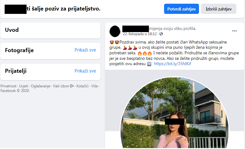 Žene koje su na slikama tih lažnih profila vrlo vjerojatno nisu ni svjesne da se njihova slika koristi za takve stvari pa sam zato zacrnio sve informacije na slici.
